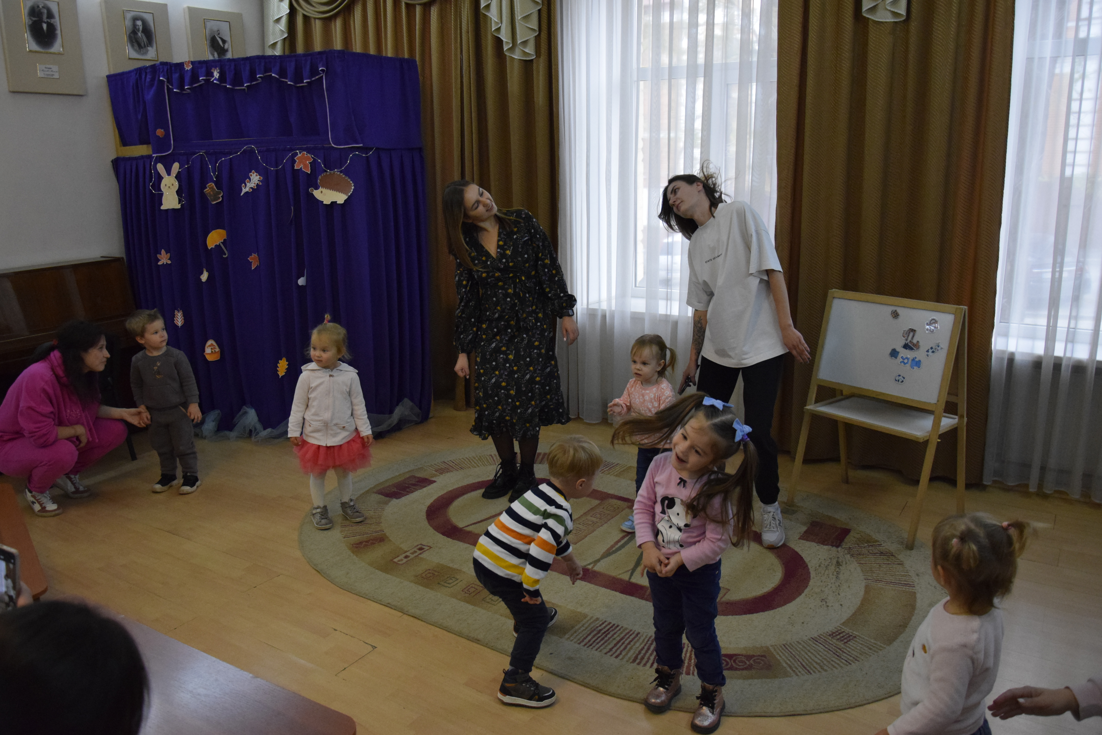 Наші неймовірні малюки сьогодні робили пальчикову гімнастику, даруючи бібліотекарці та один одному теплі сонечка-долоньки, танцювали руханку, слухали осінні віршики, шукали «скарби» в чарівній скриньці, дивилися лялькову виставу «Червона шапочка».