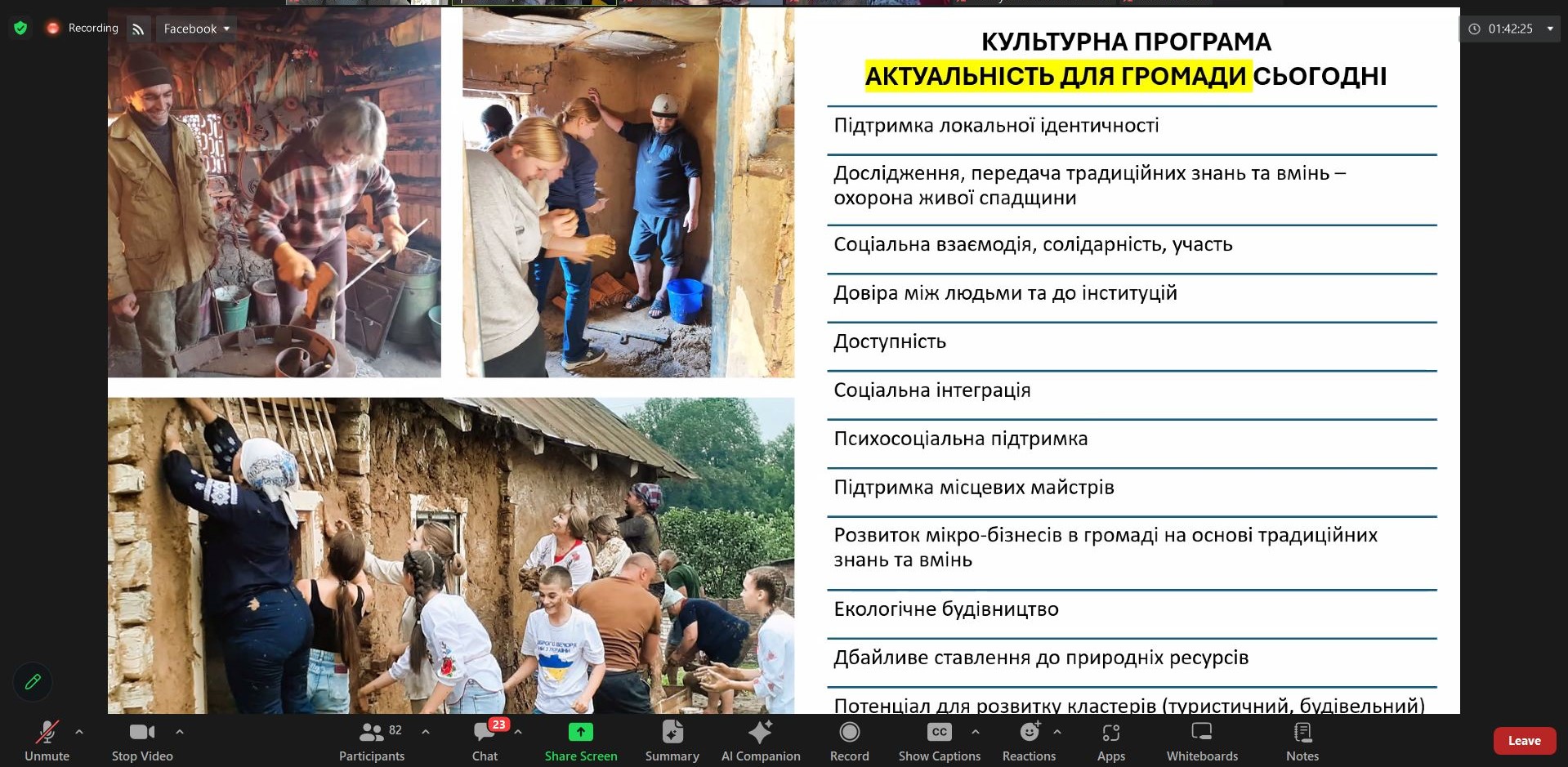 Під час спільного семінару спікери намагалися вийти за рамки сприйняття культури як виключно дозвілля, розглянули приклади того, як спільні практики та нові погляди на культуру зміцнюють спільноту, сприяють її самоусвідомленню та налагодженню зв’язків як на рівні локальної громади, так і на рівні всього українського суспільства.