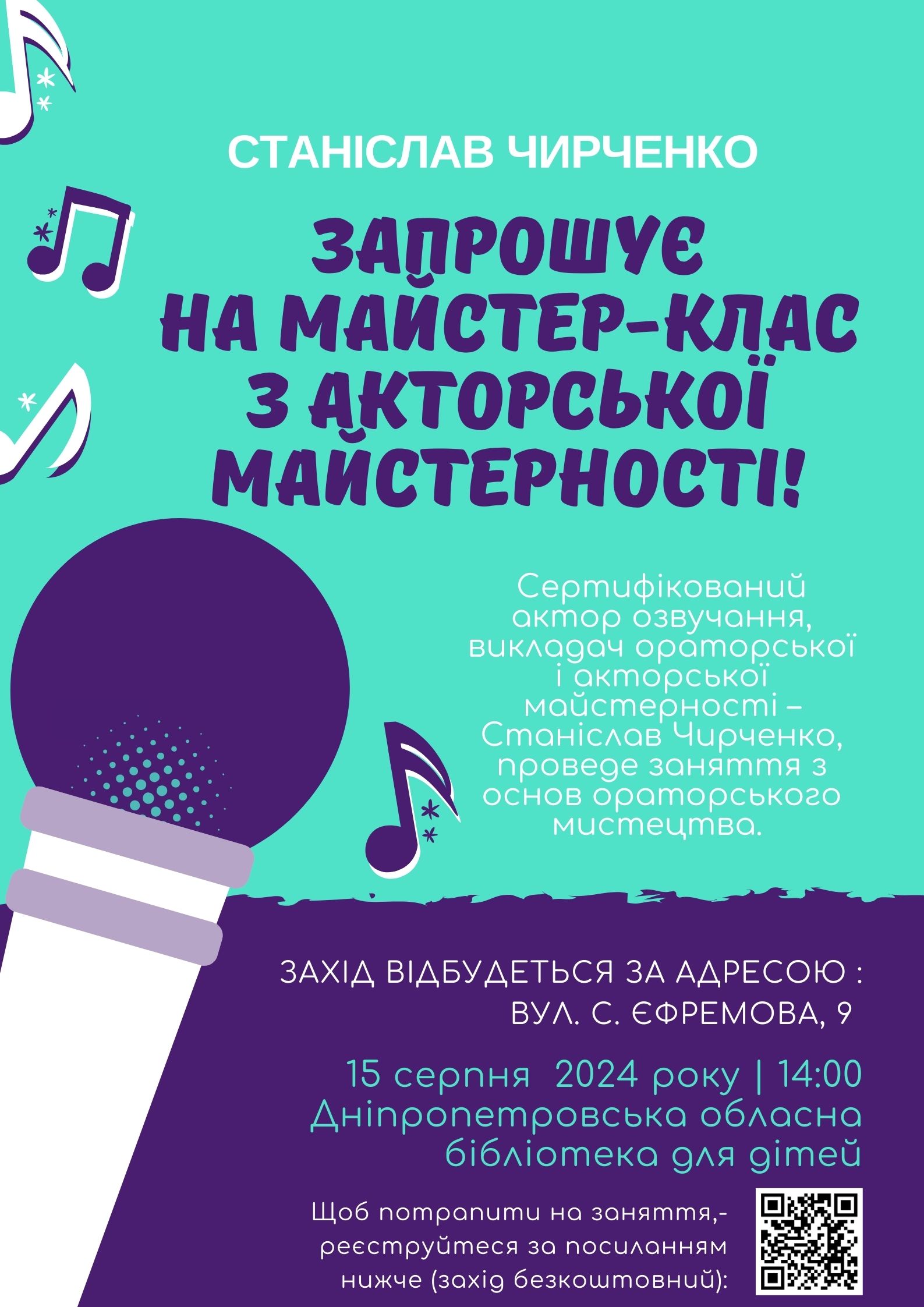 Сертифікований актор озвучання, викладач ораторської й акторської майстерності - Станіслав Чирченко, проведе заняття з основ акторської майстерності, розкаже і покаже ази і фундаментальні бази цієї професії.
