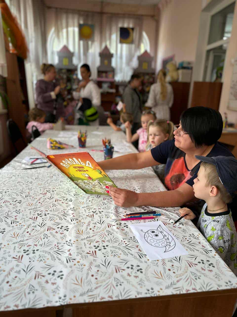 Після захопливої подорожі з курчатком малята поринули у світ голосних читань. Діти уважно слухали яскраві та добрі історії, разом обговорювали героїв і ділилися власними враженнями. Такі читання допомагають юним відвідувачам не лише розвивати мовлення й уяву, а й відчувати радість від спільного відкриття книжкових пригод.