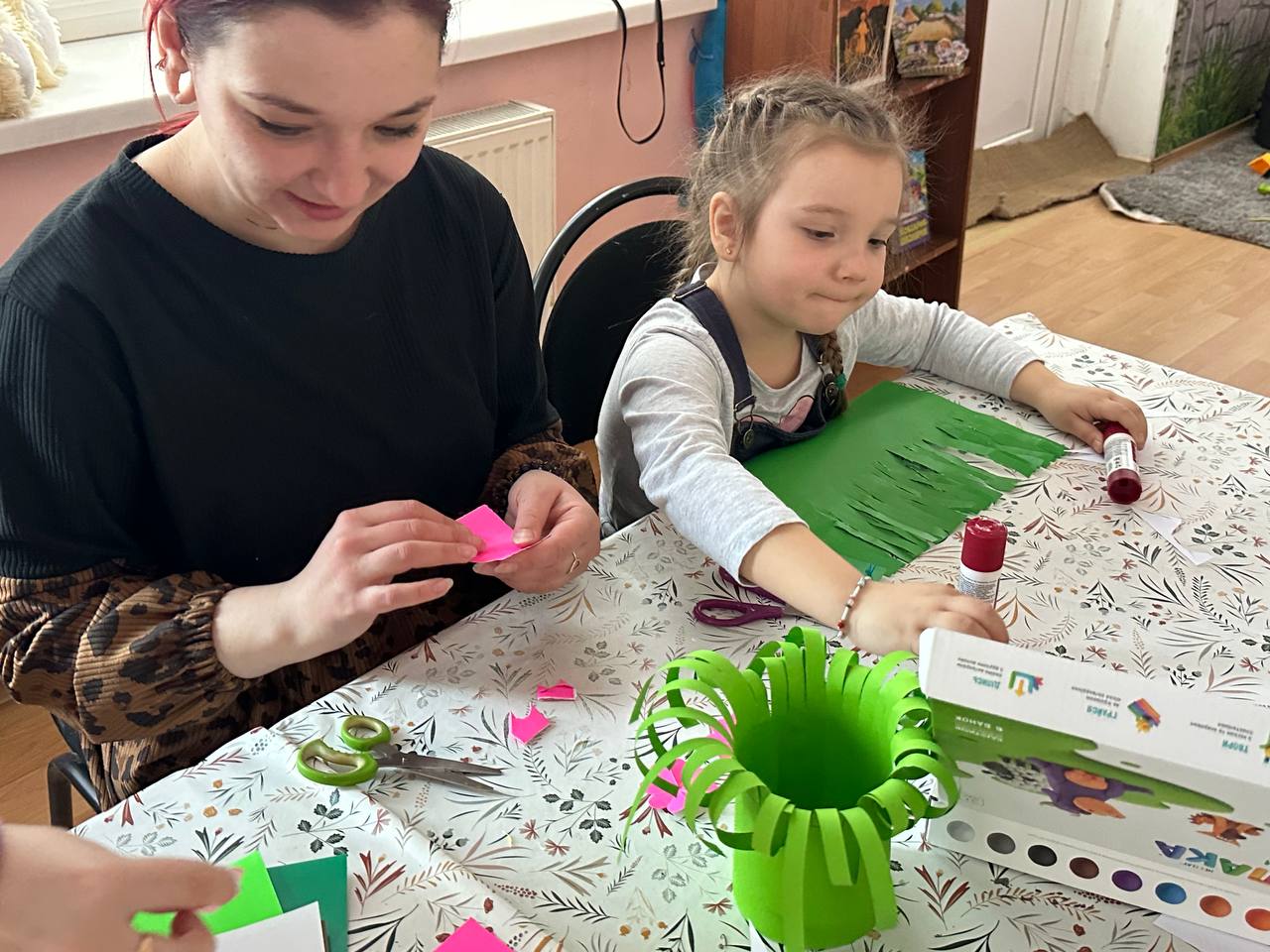 Діти із захопленням створювали поробки з аплікацією — квіткові кошики, наповнюючи їх барвами весни, фантазією та гарним настроєм.