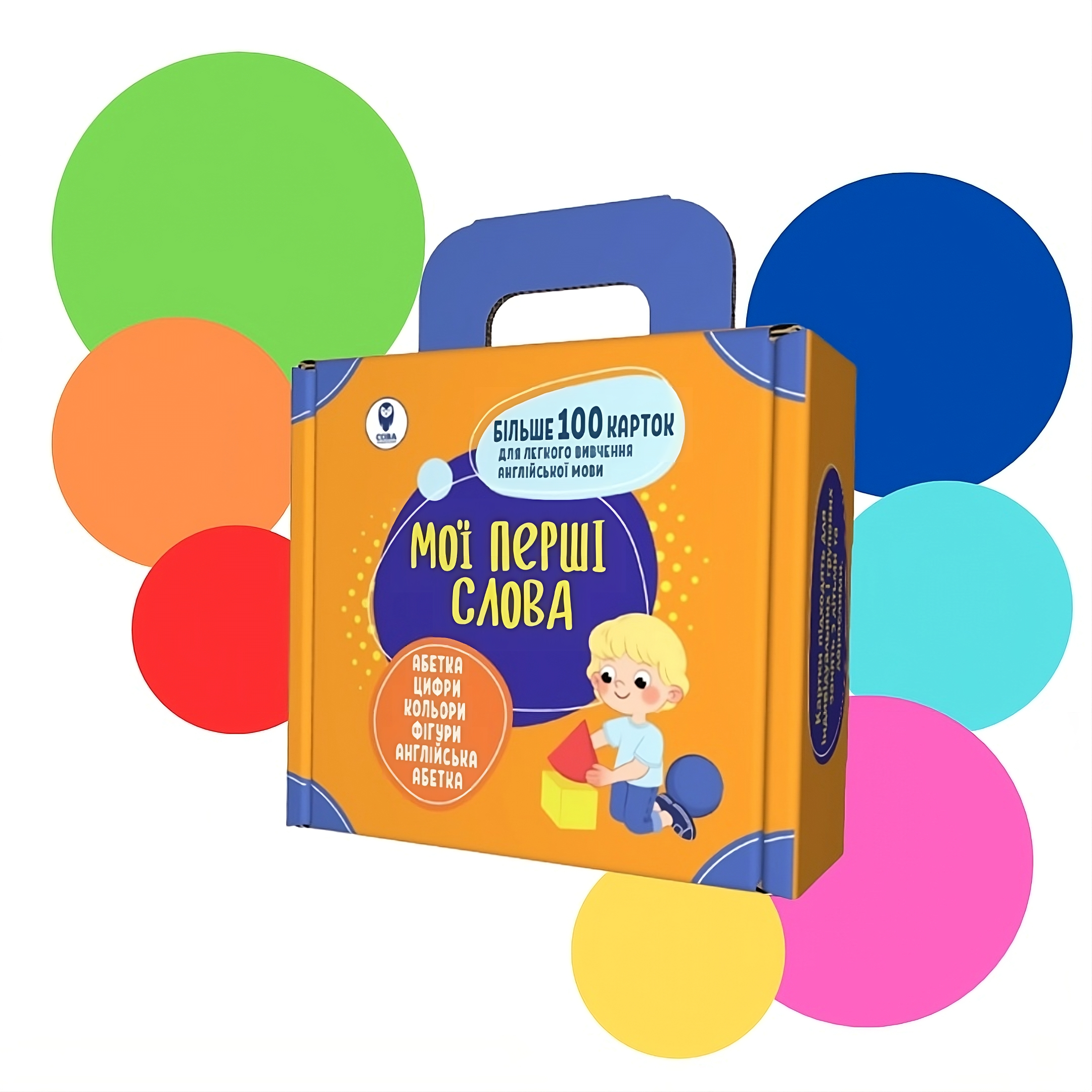 5. Мої перші слова – набір зі ста українсько-англійських карток для вивчення слів на різні теми: абетка, цифри, кольори, фігури тощо. До кожного слова в наборі додається відповідне зображення й транскрипція для легкого запам’ятовування, а також правила й приклади ігор із батьками для перевірки вивчених слів.